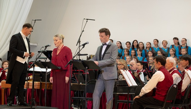 Заслуженные артисты Карелии Александр Картушин (художественное слово), Наталья Мирошник (художественное слово) и Валентина Каменская (сопрано);